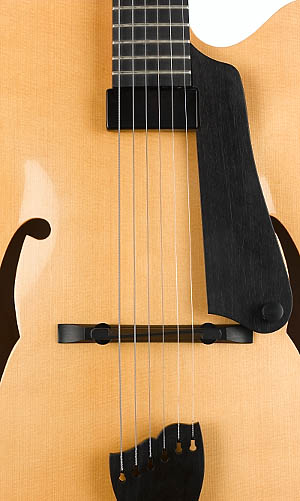 In terms of playability, this guitar has a feel and response that is rarely encountered in the world of archtops. It is an absolute joy! The single Kent Armstrong floating pickup provides a smooth, powerful, yet traditional response. However, you don't have to plug this baby in to enjoy its voice. Just play it acoustically and you will be blown away!
